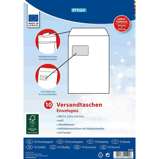 10 Versandtaschen DIN C4, 229 x 334 mm