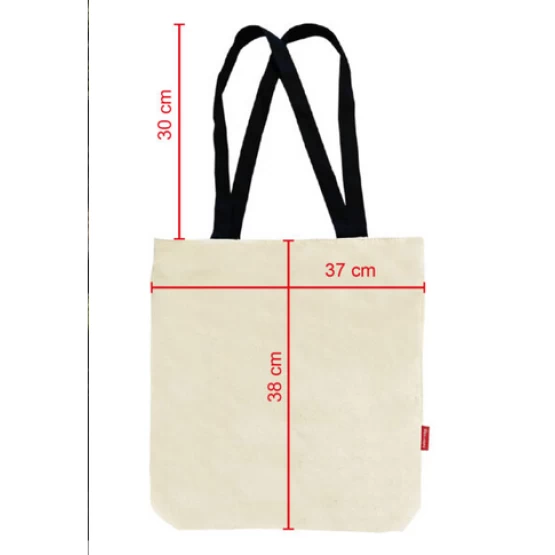Weisse Tragetasche aus Baumwolle mit langen Henkeln.