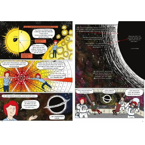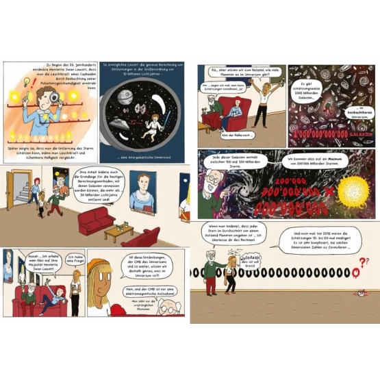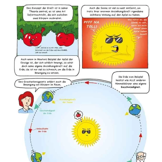 Eine junge Forscherin rettet den Physik-Nobelpreisträger Michel Mayor - Entdecker des ersten Exoplaneten - vor aufdringlichen Fans. Gemeinsam reisen sie in der Zeit zurück, um die grossen Köpfe der Physik zu treffen und die Prinzipien zu entdecken, die das Universum regieren: von Gravitationswellen bis zur Relativitätstheorie, einschliesslich des grössten aller Stars, der Schwarzen Löcher. Diese Graphic Novel wurde von einem Illustrator und einem humorvollen Physiker kreiert und sie erklärt die physikalischen Phänomene, die unser Leben bestimmen, in einfachen Worten. Abenteuer, Gags und atemberaubende Begegnungen stehen auf dem Programm und verleihen der Gravitation und anderen Prinzipien der Physik und Kosmologie eine unterhaltsame Note.