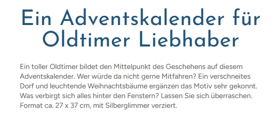 Adventskalender Mit dem Oldtimer zum Fest