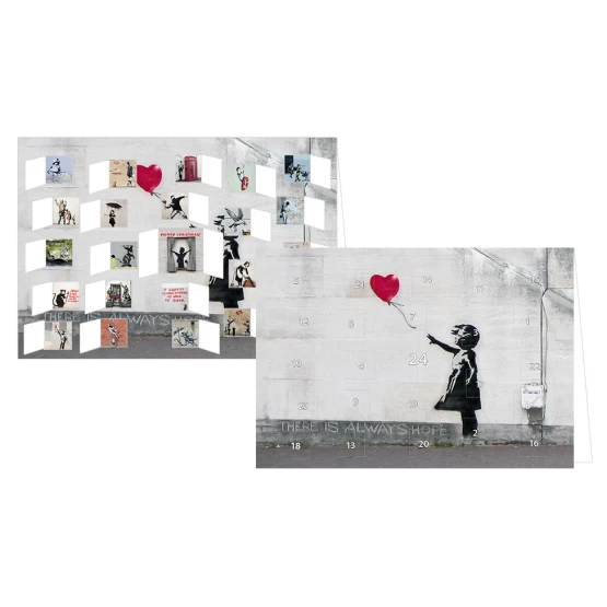 Banksys Graffitis erzählen Geschichten. Satirisch, wahr und berührend. Politisch, originell und frech. 24 Mal Banksy hinter den Türchen.