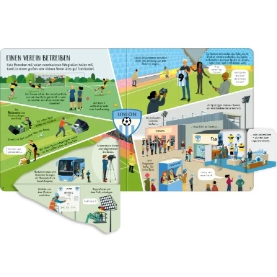 Wann wurde das Fußballspielen erfunden? Wie wird man zum Profi? Und wer bestimmt eigentlich die Regeln? Unter mehr als 50 Klappen erhältst du Einblick in Vereine und Training, lernst den Ablauf an einem Spieltag kennen und erfährst weitere spannende Fakten.