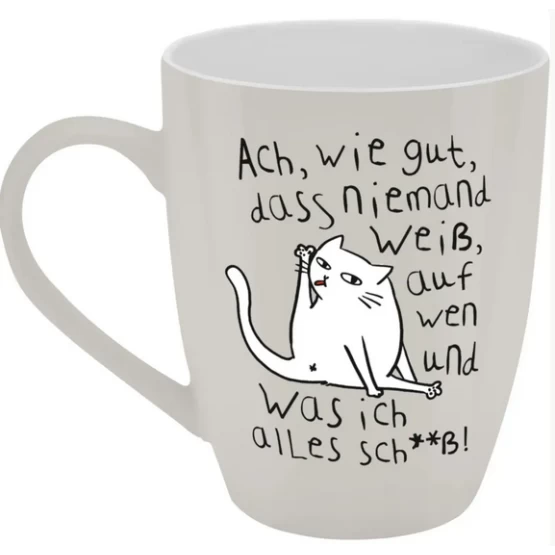 Diese superlustige Tasse stellt klar und deutlich Deine Meinung dar. Sie malt jedem der sie sieht ein Schmunzeln aufs Gesicht. Sie ist ein super Geschenk für Menschen, die gelassen vor sich hin leben und welchen die Meinung von anderen "geschissen" bleiben kann.