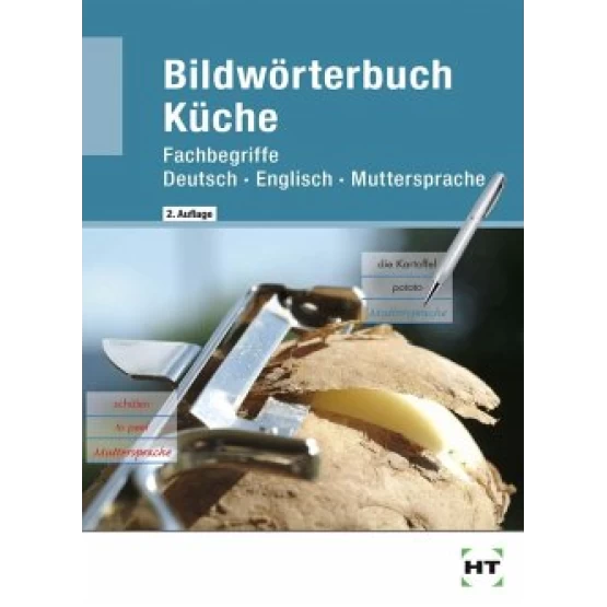 Die optimale Berufsvorbereitung für Migrantinnen und Migranten sowie Menschen mit geringen Deutschkenntnissen zum Erlernen von Deutsch als Zweitsprache (DaZ). Das Fach-Bildwörterbuch zeigt anhand von beschrifteten Bildern das Fachvokabular aus der (Groß-)Küche. Die Fachbegriffe stehen in deutscher und englischer Sprache neben den entsprechenden Bildern