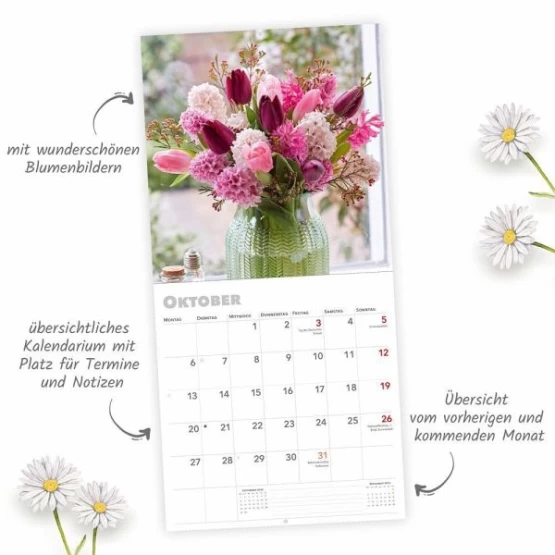 Im Wald, am Feldrand oder im Park um die Ecke – unsere heimische Pflanzenwelt umgibt uns zu jeder Zeit. Der dekorative Blumen-Broschurkalender im Format 30 x 30 cm präsentiert jeden Monat herrliche florale Motive mit zusätzlichen Informationen. Dank des übersichtlichen Kalendariums mit viel Platz für Termine und Erinnerungen hilft der Kalender wunderbar beim Organisieren des Alltags. Das perfekte Geschenk für alle naturverbundenen Pflanzenfreunde!