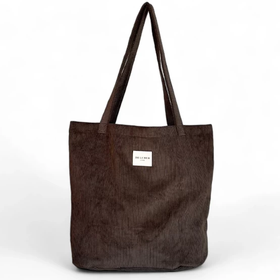Large shopper bag with handles for carrying on the shoulder. Made with thick brown corduroy fabric. For proper maintenance, it is recommended to wash it by hand in cold water and not to use a dryer.