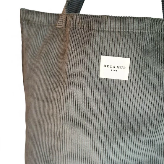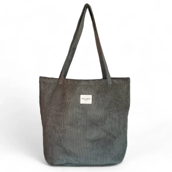 Large shopper bag with handles for carrying on the shoulder. Made with thick gray corduroy fabric. For proper maintenance, it is recommended to wash it by hand in cold water and not to use a dryer.