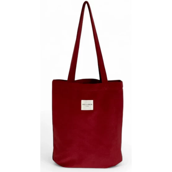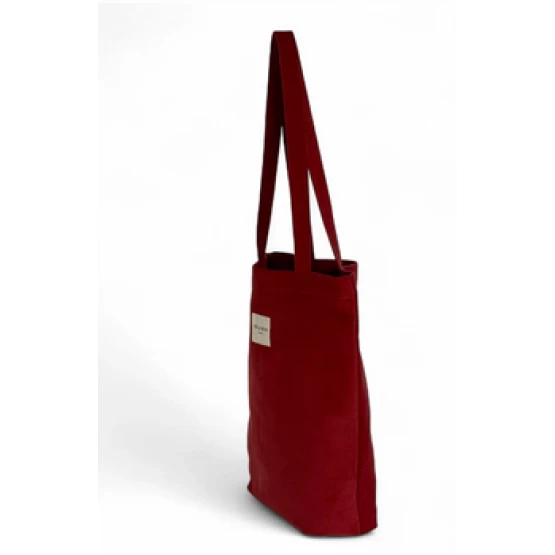 A compact and durable burgundy velvet tote bag, perfect for everyday use. Features comfortable handles and a top opening for easy access to your belongings. Ideal for carrying your essentials in style. Made in Spain.