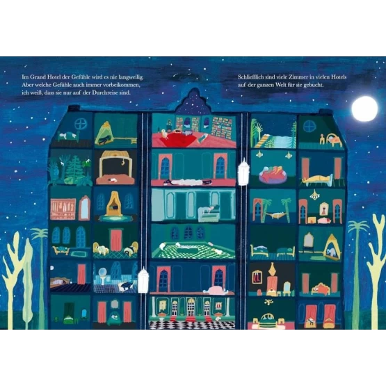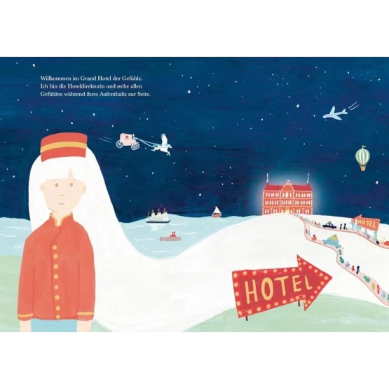 Im Grand Hotel wird es nie langweilig. Ob positiv oder negativ, ob groß oder klein - egal welche Gefühle einziehen, sie sind nur auf der Durchreise. Manche Gäste sind pflegeleicht, angenehm und unterhaltsam, wie Zuversicht, Gemütlichkeit und Freude. Andere sind anspruchsvoll und verlangen viel Aufmerksamkeit oder werden kompliziert. Doch wenn man sich Zeit für sie nimmt, findet man heraus, was sie wirklich brauchen.