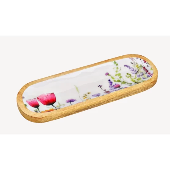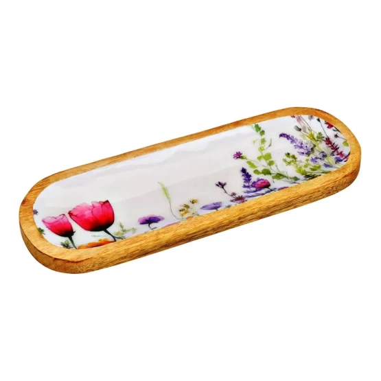 Deko Schale Blumen Dekor aus Mangoholz, Bunt (B/H/T) 34x3x12cm. Sie ist aus Mangoholz gefertigt und kann jeden Raum schön dekorieren