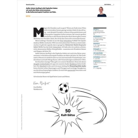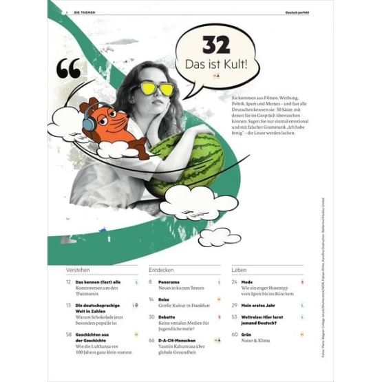 * Titelthema: Sprechen Sie Kult-Deutsch! 50 Sätze aus der Popkultur, mit denen Sie Deutsche im Gespräch überraschen werden. *Die deutschsprachige Welt in Zahlen: Warum Schokolade jetzt besonders populär ist