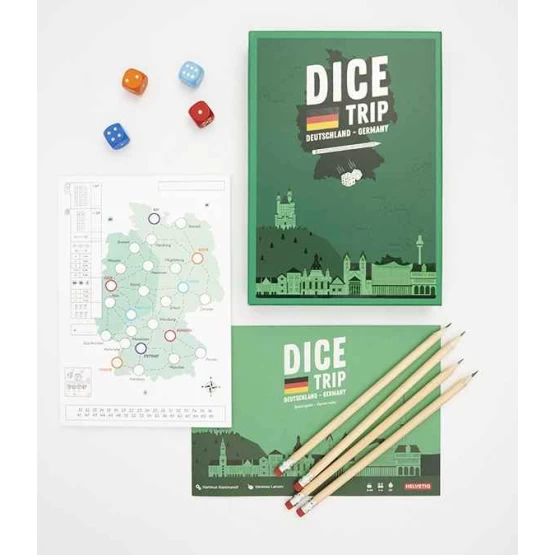 Reise in diesem geografischen Roll-and-Write-Spiel durch Deutschland: Würfel, wähle die besten Kombinationen und vervollständige die Karte. Welche Städte besuchst du und welche musst du auslassen? Es braucht Taktik und Vorausplanung, um deine Mitreisenden zu überlisten und zu gewinnen!
