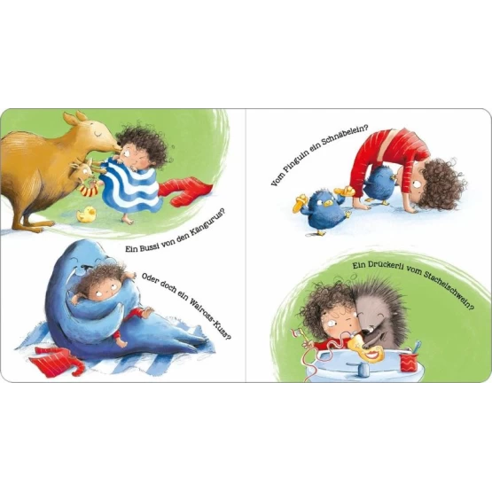 Der kleine Bär möchte dich drücken, das Seepferdchen gibt dir ein feuchtes Küsschen und das Stinktier möchte an deiner Wange kuscheln. Hättest du gedacht, dass Nilpferde, Koalas und Stachelschweine so schmusebedürftig sind? Und wen umarmst du eigentlich am liebsten auf der ganzen Welt?