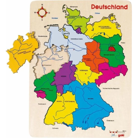 Wo liegt welches Bundesland? Wie heißt welche Hauptstadt? Mit exakten Konturen der einzelnen Bundesländer und deren größten Flüsse kennst du dich in kurzer Zeit bestens in Deutschland aus.