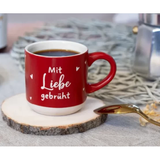 Kaum etwas schmeckt so gut wie ein Kaffee, der mit Liebe zubereitet wurde. Diese Espressotasse erzählt genau davon und bringt ein warmes Gefühl in jede Pause. Ihr strahlendes Rot weckt Lebensfreude und macht sie zu einem besonderen Begleiter. Und auch wenn der Espresso längst getrunken ist, bleibt die Tasse ein stilles Zeichen für all die Liebe, die in einfachen Dingen steckt.