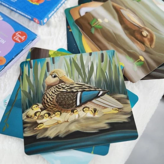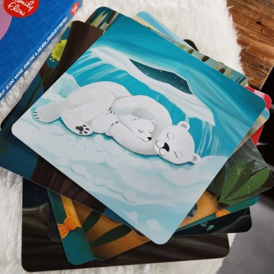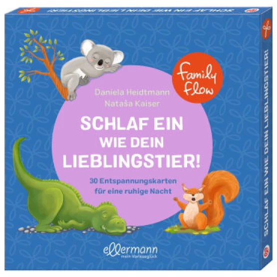 Ich bin klein, ich schlaf ein - und durch! Einschlafroutinen sind super wichtig, sie helfen Kindern, schneller ein- und häufiger durchzuschlafen. Family Flow "Schlaf wie dein Lieblingstier" ist die Idee für alle, die eine moderne und effektive Alternative zu Schlafliedern und klassischen Büchern suchen. Mit dem Vorlesen dieser süß illustrierten Karten habt ihr das ideale Einschlafritual, denn jede der 30 Bildkarten enthält eine Geschichte mit einer Übung. Die Geschichten erzählen von allen Lieblingstieren unserer Kinder, sie enthalten Übungen zur Körperwahrnehmung, Atemübungen, Streichel- und Massage-Elemente. Die stabilen Karten lassen sich auch im Liegen gut festhalten. Für eine ganzheitlich entspannte Nacht - einfach mal ausprobieren.