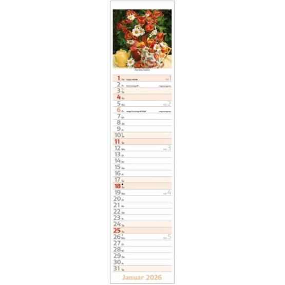 Praktischer Kalender mit viel Platz zum Eintragen und mit Fotos von bezaubernden Blumenarrangements.