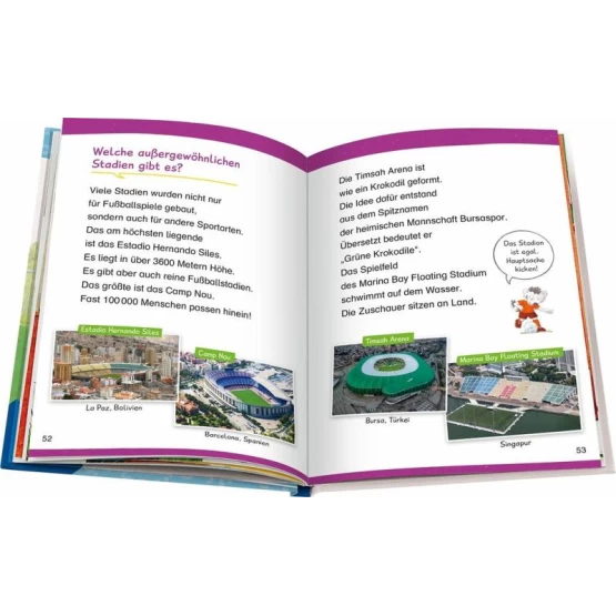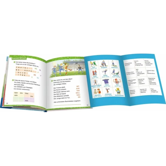 Fußball begeistert nicht nur im Fernsehen, sondern auch in der Freizeit – egal ob im Verein oder auf der Wiese. Welche Schusstechnik ist die beste? Wie werde ich zum Fußballstar? Welche ist die beste Mannschaft der Welt? All das finden Erstleser ab dem 2. Lesejahr mit diesem Band selbstständig heraus. Einfache, kurze Texte machen das Selberlesen kinderleicht. Und dank abwechslungsreicher Buchstaben- und Kreuzworträtsel, Suchaufgaben, Sudokus und Stickern gelingt das Lesenüben spielerisch.