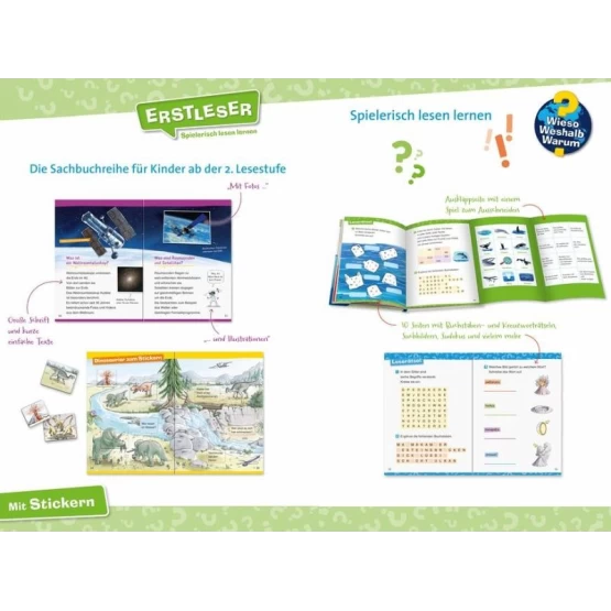 Mit der Reihe Wieso? Weshalb? Warum? Erstleser erschließen sich Kinder ihre Lieblingsthemen selbst. In vier Kapiteln beantworten die Bücher brennende Kinderfragen in kurzen, leicht verständlichen Sätzen. Wie lebt man auf einer Raumstation? Welche Sprache sprechen Wale? Wie gefährlich ist ein Vulkan?
