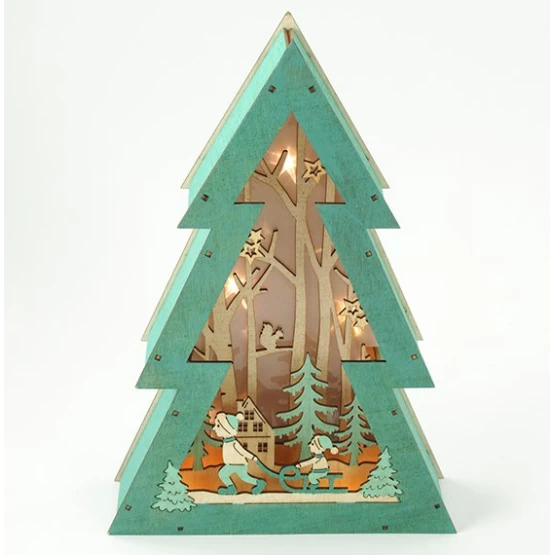 Weihnachts Deko Tannenbaum Aufsteller aus Holz  warm weiß beleuchtet