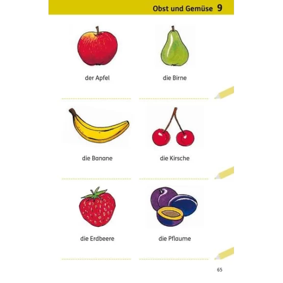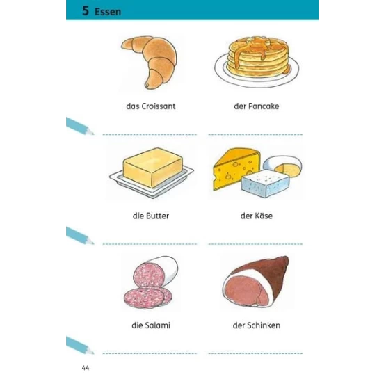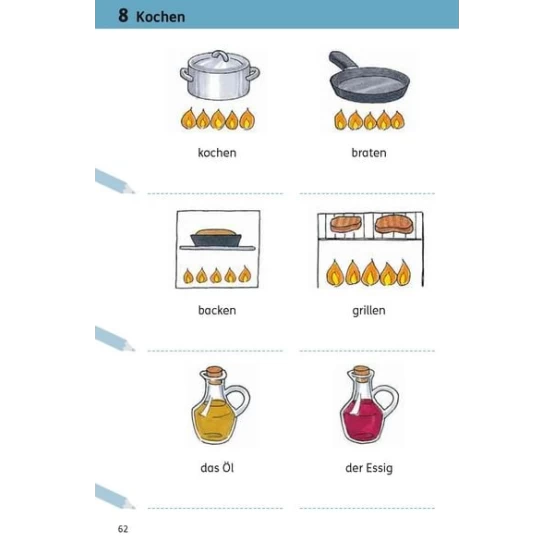 - Mit Schreiblinien für die Übersetzung in die eigene Muttersprache und zum Nachschreiben der deutschen Begriffe