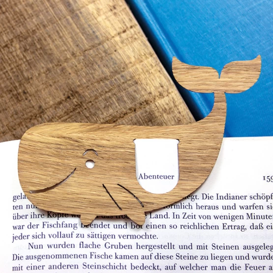 Dieses Lesezeichen aus dünnem Eichenholz wird in Deutschland gestaltet und präzise lasergeschnitten. Mit einer Rückwand aus Papier ist es biegsam und schonend für die Buchseiten. Die umweltfreundlichen Materialien Holz und Papier stammen aus nachhaltiger Forstwirtschaft. Durch die natürliche Holzmaserung wird jedes Stück zum Unikat!
