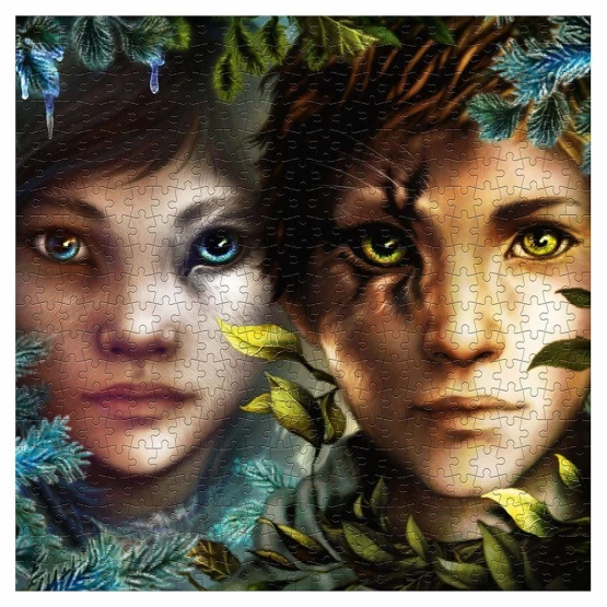 Wer schaut geheimnisvoll zwischen den Blättern und Tannenzweigen hervor? Das sind Carag, der Puma-Wandler, und Tikaani, die Polarwolf-Wandlerin – zwei der Lieblingscharaktere aus der Woodwalkers-Welt von Katja Brandis. Mit diesem atmosphärischen Motiv von Claudia Carls können die beiden direkt nach Hause geholt werden. Das perfekte Geschenk für alle Fans der Woodwalkers und Seawalkers!