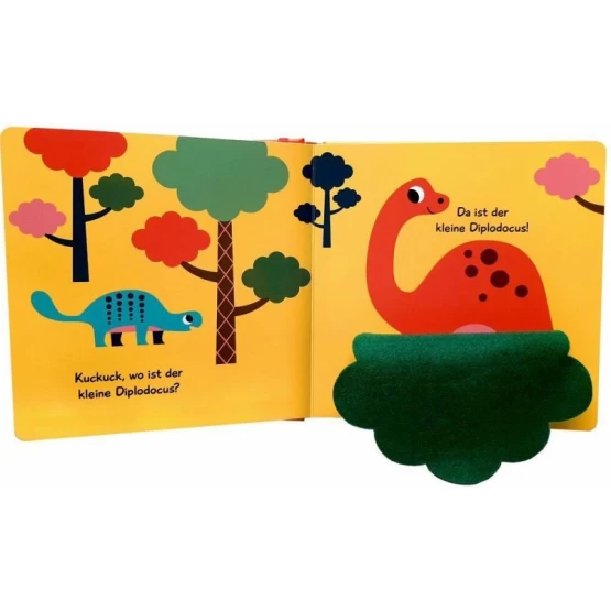 Wo haben sich der kleine T-Rex und seine Freunde versteckt?Große Fühlklappen und ein Spiegel auf der letzten Seite laden kleine Entdecker zum Suchen und Spielen ein.