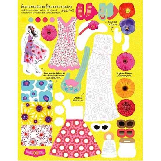 Dieses Anziehpuppen-Stickerbuch beinhaltet 350 sommerliche Fashion-Sticker. Gestalte davon über 150 Anzieh-Sticker mit trendigen Mustern und Farben - ganz wie es dir gefällt. Stelle modische Sommer-Outfits zusammen und ergänze passende Accessoires. Dank der vielen Tipps und Anregungen wird deine erste eigene Kollektion auf jeden Fall ein großer Erfolg!