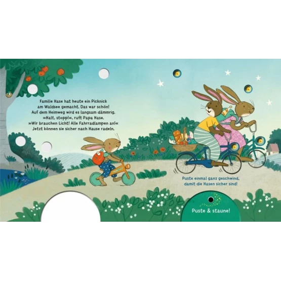 Dieses interaktive Pappebuch für Kinder ab 18 Monaten begeistert durch seinen magischen Mitmach-Effekt: Einmal pusten und die Lichter beginnen zu leuchten!