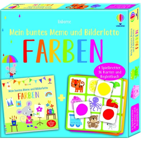 Dieses Memo-Spiel und Bilderlotto macht großen Spaß und schult ganz nebenbei Gedächtnis, Kommunikationsfähigkeit, Beobachtungsgabe und Konzentration. Im farbenfrohen Begleitbuch findest du die Anleitungen für das Memo-Spiel und Bilderlotto und lernst viele Farben kennen - von roten Erdbeeren bis zu braunen Teddybären.