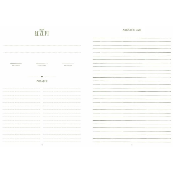 Liebevoll gestaltetes DIY-Rezeptheft mit separater Zutatenliste, Inhaltsverzeichnis zum Selbstgestalten und kulinarischen Zitaten. Ein schönes Geschenk für alle, die gerne kochen und backen!