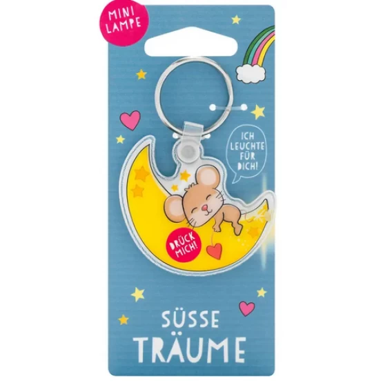 Mini-Lampe mit Motiv"Maus", mit Schlüsselring, auf Headercard, mit weißem Licht,Batterie enthalten. Sehr nützlicher Schlüsselanhänger auch für die Nacht