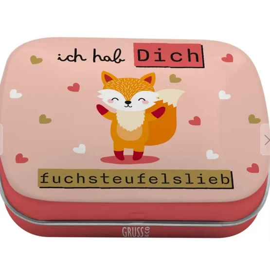 „Ich hab Dich fuchsteufelslieb“ – dieser Moment, in dem Du jemanden von Herzen gern hast und es einfach nicht genug oft sagen kannst. Diese Pfefferminzdose steckt voller Energie und Frische, genauso wie Deine Gefühle. Beim öffnen der Dose lässt Du Dich verzaubern und wirst ganz mit Liebe umhüllt