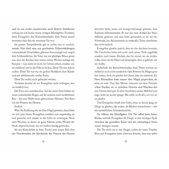 Evangeline Fox hat immer an Happy Ends geglaubt. Bis sie erfährt, dass die Liebe ihres Lebens kurz davor steht, eine andere zu heiraten, und ihre Träume von jetzt auf gleich zerplatzen. Um die Hochzeit noch rechtzeitig zu verhindern – und ihr eigenes verletztes Herz zu retten –, sieht Evangeline nur einen Ausweg: Sie muss einen Deal mit Jacks, dem charismatischen, aber niederträchtigen Prinz der Herzen eingehen. Als Gegenleistung für seine Hilfe fordert Jacks drei magische Küsse, deren Empfänger und Zeitpunkt er bestimmt. Doch bereits nach ihrem ersten versprochenen Kuss muss Evangeline erkennen, dass der Handel mit einem Unsterblichen ein gefährliches Spiel sein kann – und dass der Prinz der Herzen mehr von ihr will, als sie zu versprechen bereit war. Jacks hat Pläne für Evangeline, die entweder das größte Happy End aller Zeiten nach sich ziehen … oder die vorzüglichste Tragödie.