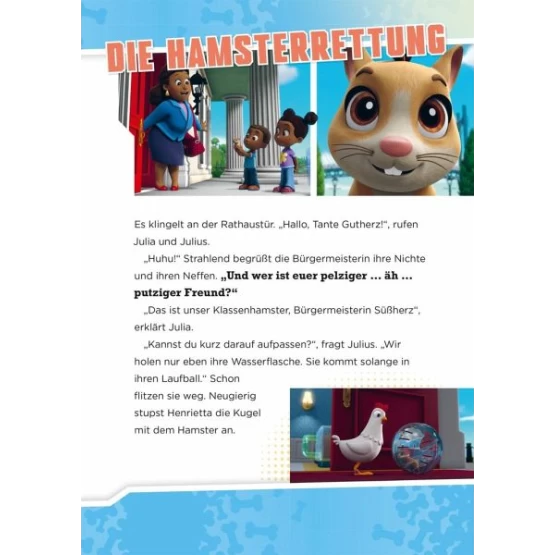 Auf 80 Seiten gibt es vier ganz neu nacherzählte Geschichten der Helfer auf vier Pfoten mit vielen Bildern aus den TV-Folgen. Die Geschichten basieren auf den Episoden der beliebten Fernsehserie auf Super RTL.