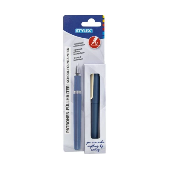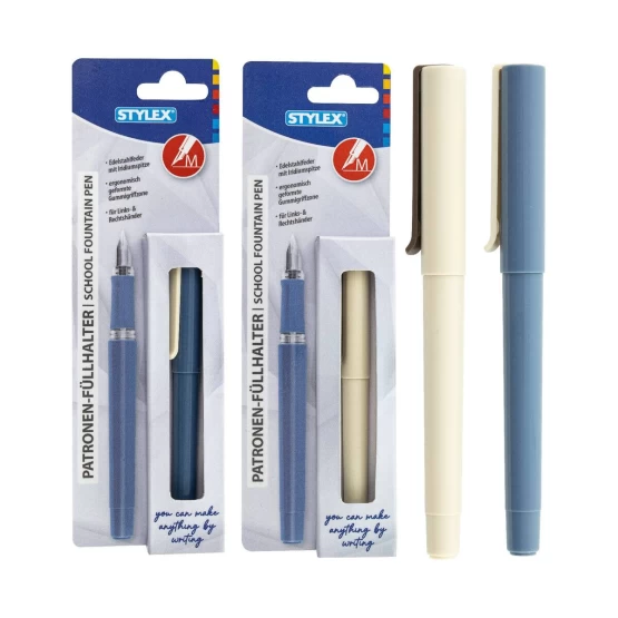 Design-Patronenfüllhalter inklusive einer blauen Tintenpatrone im Schaft, 2 verschiedene Farben sortiert, in Kartonschachtel
