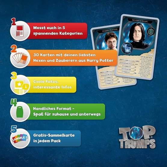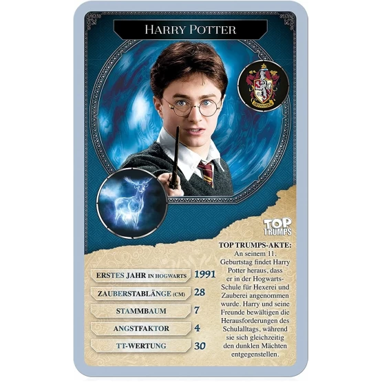 TOP TRUMPS Harry Potter 30 Hexen und Zauberer ist das ultimative Geschenk für alle, die mehr über 30 der eindrucksvollsten Magier der Harry Potter Reihe erfahren möchten.