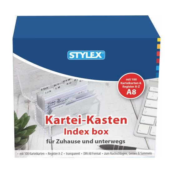 STYLEX Karteikasten, DIN A8, inkl. 100 Karteikarten