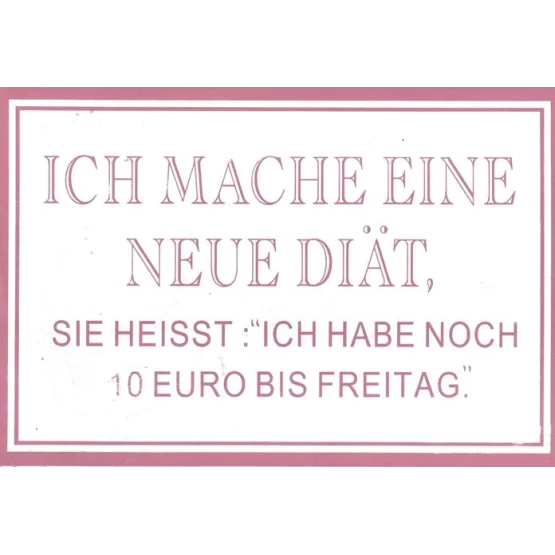 Schild Spruch Ich Mache Eine Neue Diät...., 31 x 19cm