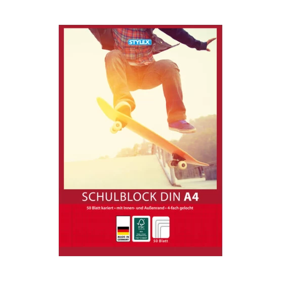 Schulblöcke, DIN A4, 50 Blatt, kariert, 4-fach gelocht, 60 g/m², mit Innen- und Außenrand