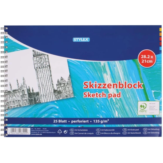 Der Aquarellblock von STYLEX eignet sich ideal zum Malen mit Aquarellfarbe und wasservermalbaren Stiften, ist aber auch geeiget für Hobbymalerei, DIY, Scrapbooking, Handlettering oder andere kreative Kunstwerke. Sie erhalten einen DIN A3 kopfgeleimten Aquarellblock mit 24 Seiten (185 g/m²) für viele verschiedene Kunstwerke. Insbesondere wird der Block, wie der Name verrät, zum Aquarellieren mit wasservermalbaren Farben und Stiften genutzt. Der Vorteil an den STYLEX Aquarellblöcken ist, dass sich das Papier nach dem Malen wieder glatt zieht. Er ist naturgefärbt, alterungsbeständig und dazu PEFC zertifiziert, d.h., dass das Produkt aus nachhaltig bewirtschafteten Wäldern und kontrollierten Quellen stammt. Denn die Marke STYLEX steht für Qualität und Sicherheit.