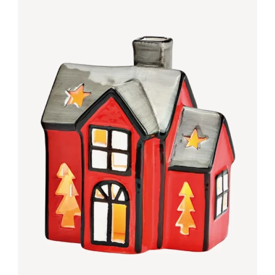 Dieses liebevoll gestaltete Keramikhaus in festlichem Rot & Grau bringt den Zauber der WeihnachLichthaus (B/H/T) 11x11,5x9cm