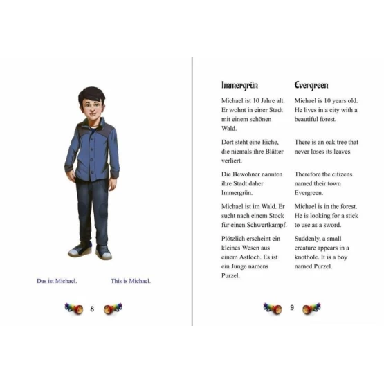 Das Dino-Abenteuer wird in Deutsch und Englisch in zwei Spalten nebeneinander erzählt und hilft, bilingual Englisch zu lernen.