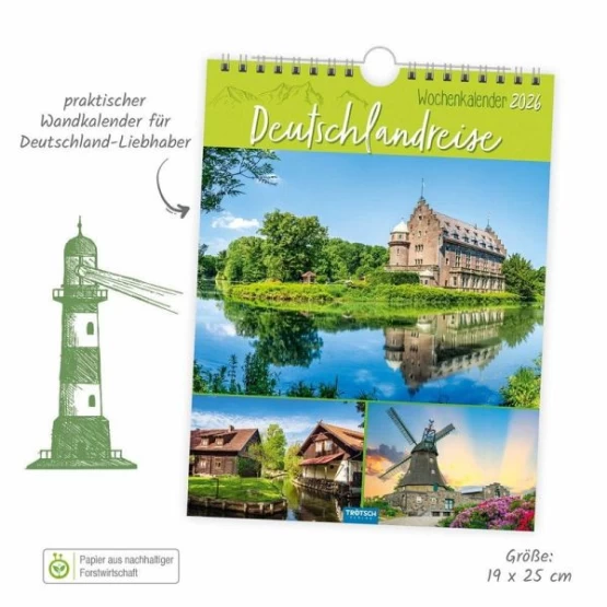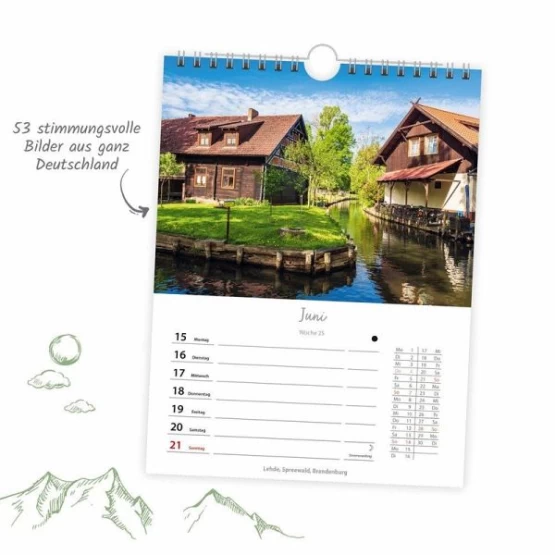 Wunderbare Illustrationen mit ausreichend Platz für Notizen jeden Tag und einer Monatsübersicht sowie Feiertage.
