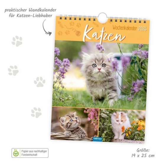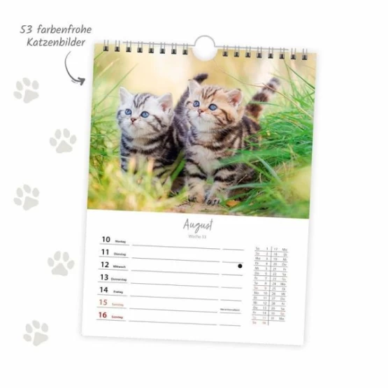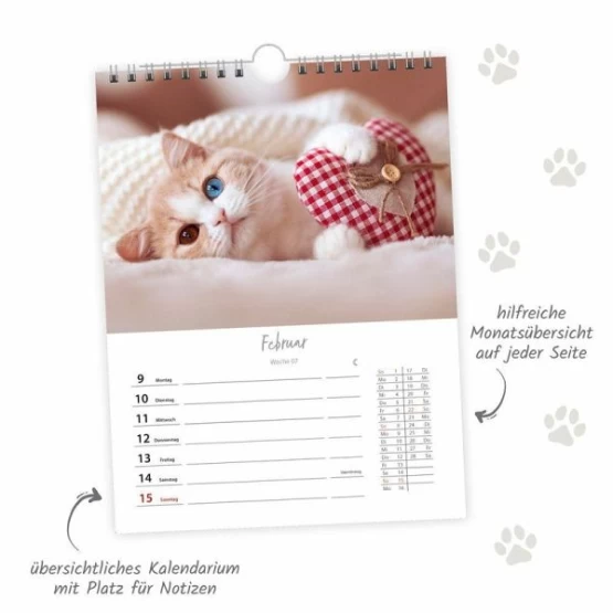 Jede Woche erwarten Katzenliebhaber zauberhafte und witzige und Bilder der anmutigen Tiere. Dieser Kalender bietet genug Platz für Notizen an jedem Wochentag und einer Übersicht des ganzen Monats. Mit Ringbindung zum Aufhängen an der Wand.