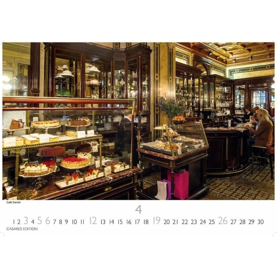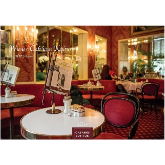Tauchen Sie ein in die faszinierende Welt der Wiener Cafehaus Kultur mit diesem exquisiten Kalender für das Jahr 2026. Der Kalender präsentiert eine beeindruckende Sammlung von historischen und modernen Kaffeehaus-Fotografien, die die einzigartige Atmosphäre und Tradition Wiens widerspiegeln. Ob als besonderes Geschenk für Wien-Liebhaber oder zur stilvollen Dekoration Ihres Zuhauses und Büros - dieser Kalender verbindet Ästhetik, Kultur und Geschichte mit 12 faszinierenden grossformatigen Fotos, gedruckt auf schwerem 170g Papier, in Spitzenqualität.Auf der Rückseite des Kalenders befindet sich ein Motivinformationsblatt mit allen Motiven. Das Kalendarium ist sehr klar und übersichtlich. Gebunden ist der Kalender mit Spiralbindung und er ist mit einem stabilen Aufhänger versehen.
