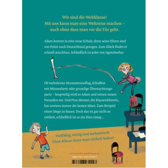 Willkommen in der weltbesten Klasse! Start einer neuen Reihe von Tanya Lieske und Sybille Hein für Kinder ab 8 Jahren - divers, lebendig und alltagsnahIn dieser kunterbunten Klasse ist immer was los! Adam kommt in eine neue Schule, denn seine Eltern sind von Polen nach Deutschland gezogen. Zum Glück findet er schnell Anschluss, schließlich ist jeder von irgendwoher. Oder wie Frau Meister, die Klassenlehrerin, sagt: "Mit uns kann man eine Weltreise machen. Auch ohne dass man vor die Tür geht." Ob turbulenter Museumsausflug, Schulfest mit Mäusealarm oder gruselige Übernachtungsparty - langweilig wird es Adam, Mariam, Yanis und ihren Freunden nie. Und Frau Meister hat sowieso immer die besten Ideen. Zum Beispiel einen Stegosaurier zu bauen. Doch das ist gar nicht so einfach, schließlich ist so ein Dino riesig ... Eine Sache ist jedenfalls glasklar: Egal was passiert, diese Klasse hält immer zusammen.