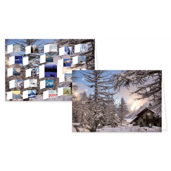 24 Türchen mit verschiedenen Motiven - Adventskalenderdoppelkarte - 12,5 x 18,5 cm mit hochwertigem Kuvert in Cellophan