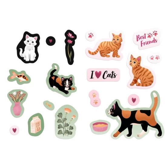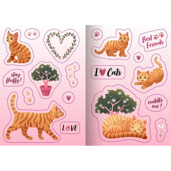 Ένα τετράδιο αυτοκόλλητων με πάνω από 80 χαριτωμένα αυτοκόλλητα για γατάκια και άλλα.